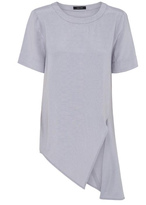 Asymmetrical tunic design with a fluid and luxe feel featuring raised front slit. The relaxed silhouette is designed with no conventional side seams. Garment can be worn freely or tucked in at front. Pair with our Rib Woven Culottes for a fresh elegant edge